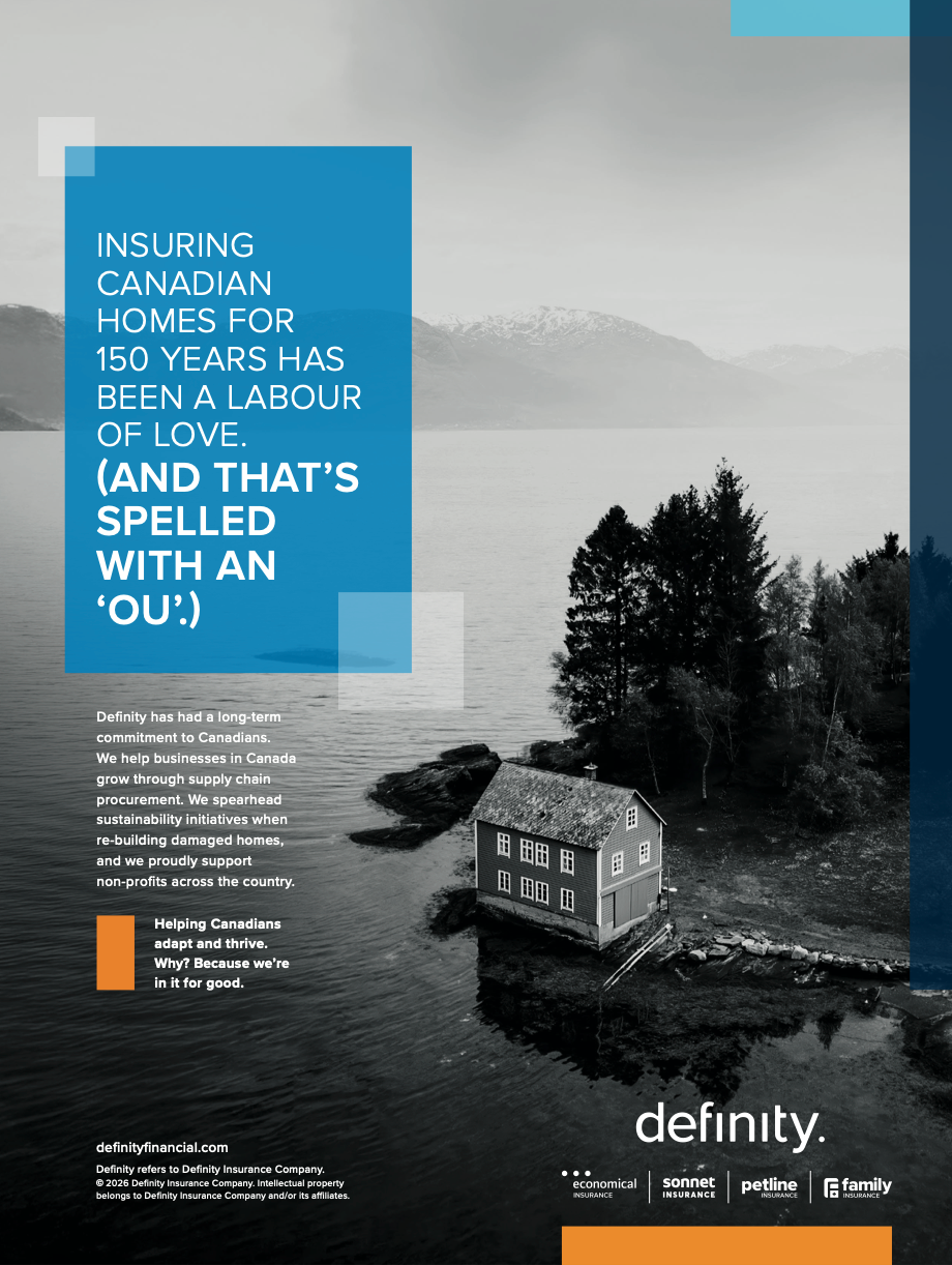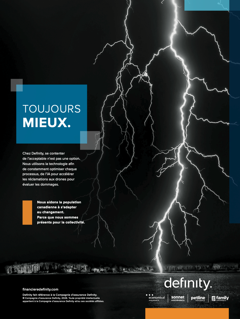 Bottom row: Magazine ads including Alberta Broker and Journal de l’assurance (EN/FR)