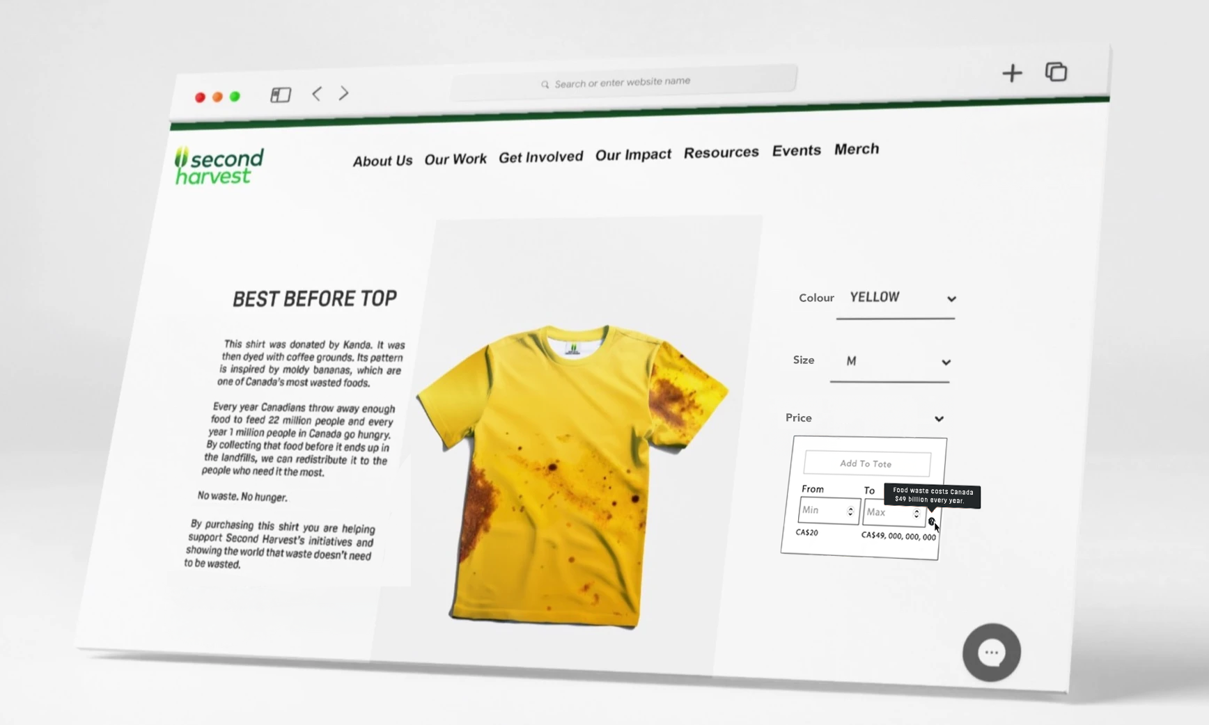 Gen Z and Millennials see fashion as a wearable extension of their beliefs and identities. So, we’ll create a clothing line made from food and textile waste to encourage them to rethink the role of waste in society. Access to the line will require a donation, with contributions ranging up to $49 billion—the cost of food waste in Canada. Bob's Your Uncle x Humber College Live Client Brief: First Place